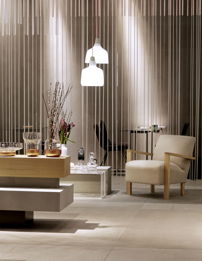 The exhibition design for glassware brand Nude focuses on the separation of transparency. Purposeful and contemporary space design is inspired by rain. The interpretation of separation is experimentally approached by the idea of liquidity.