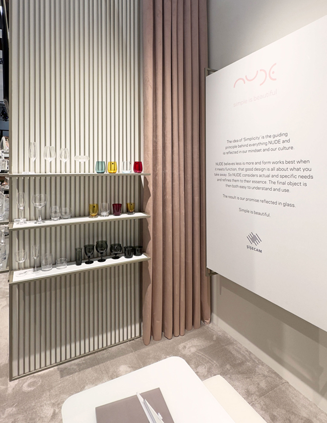 The new concept for Nude, Şişecam's global design brand, designed by demirden | ilio, which presents the motto "simple is beautiful" in an elegant and enchanting language, met with visitors at Ambiente, the largest home furnishings fair held in Frankfurt.