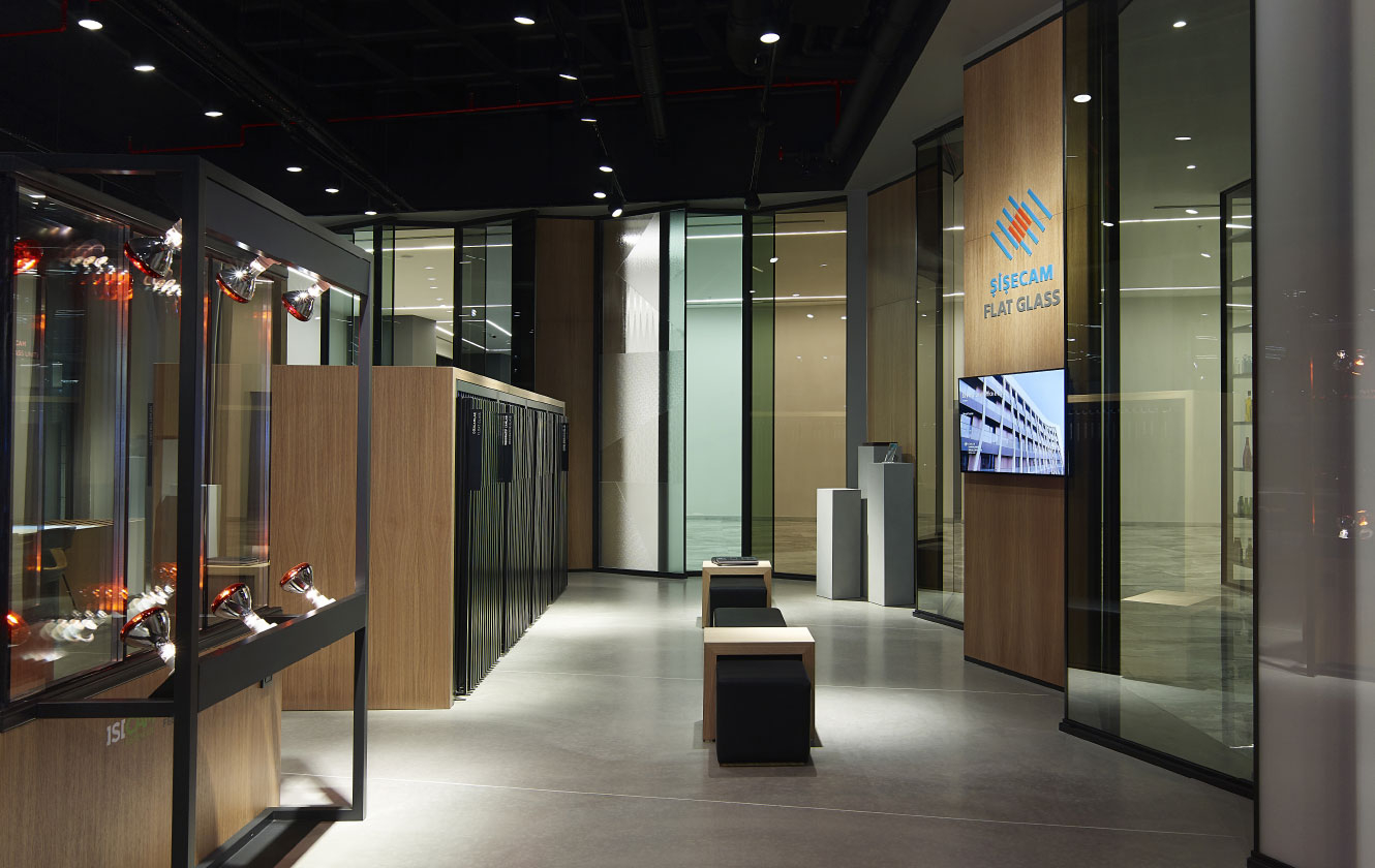 Sisecam Flat Glass Showroom project, designed and executed by Demirden, leads the industry through its strong,