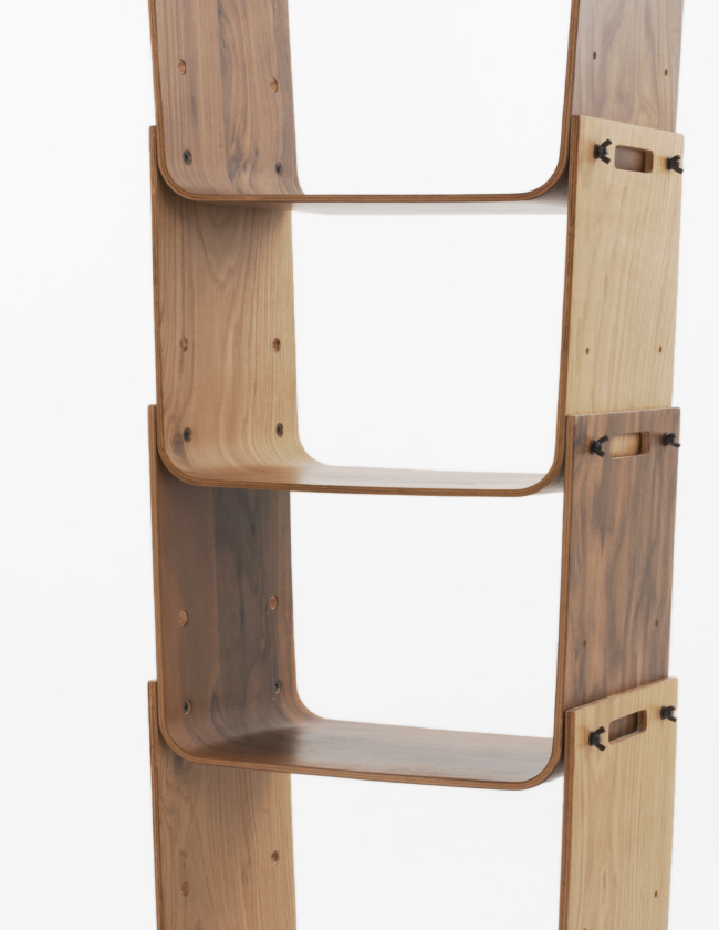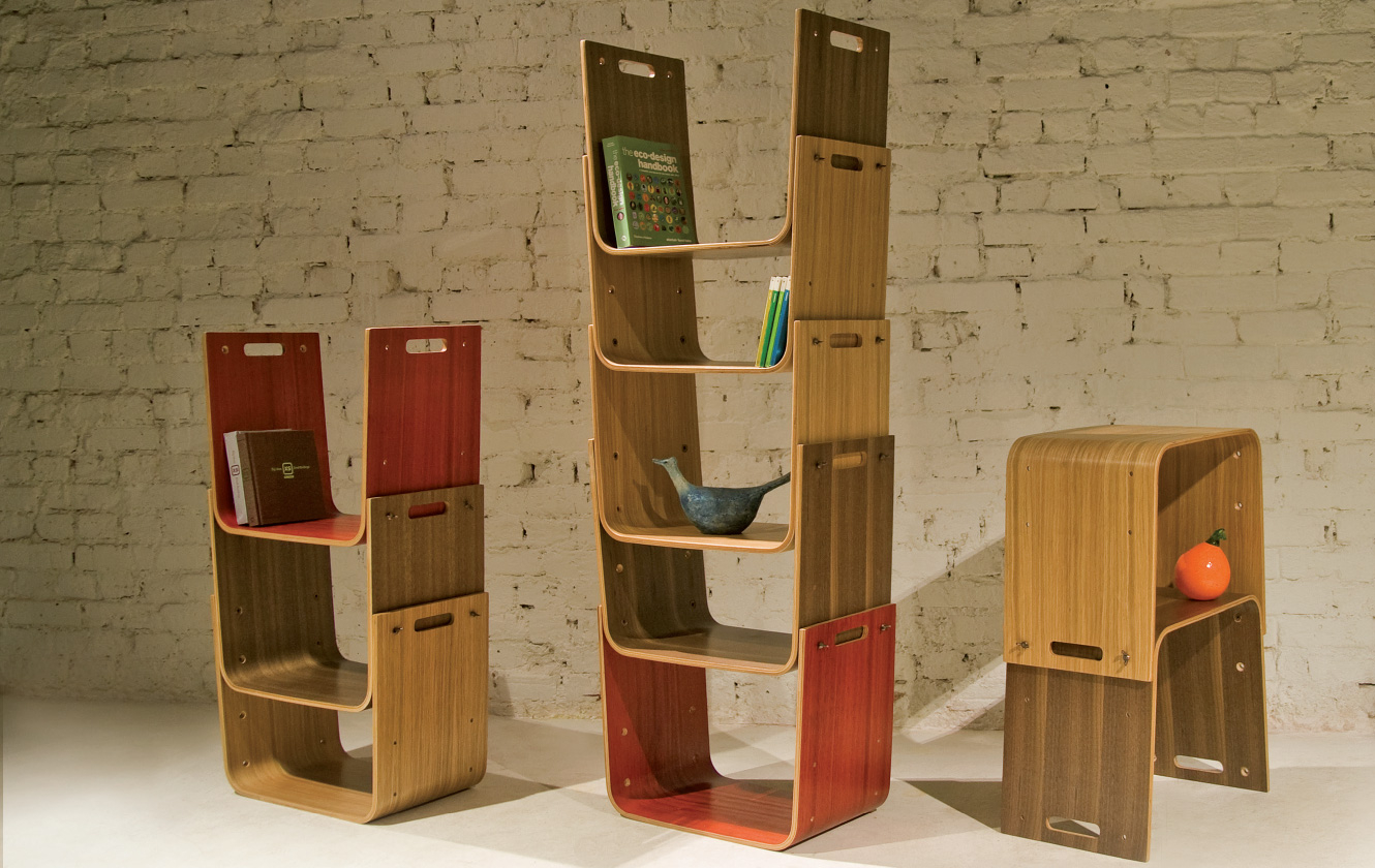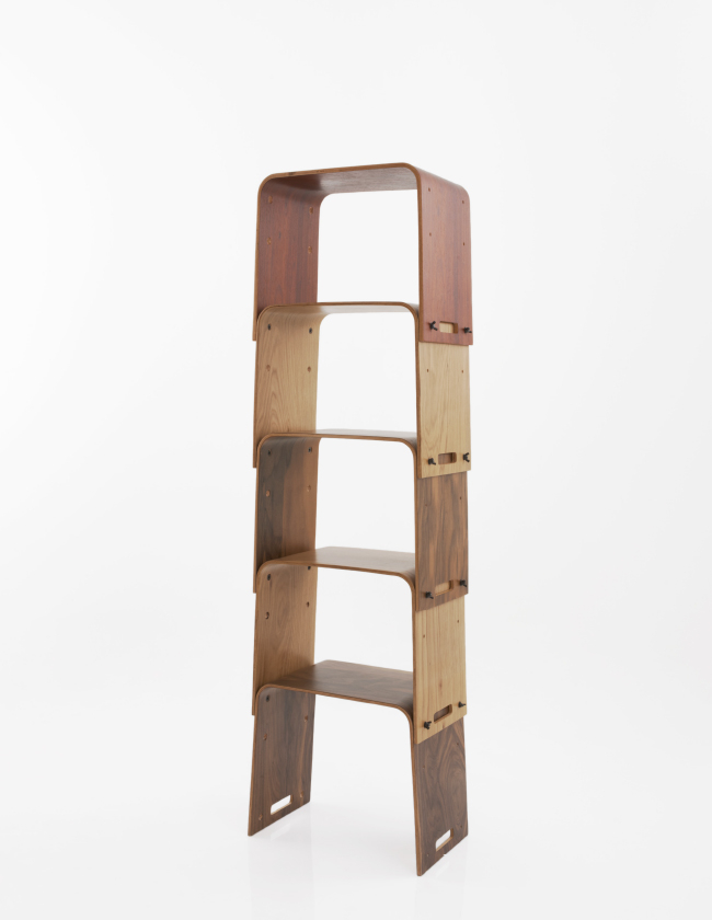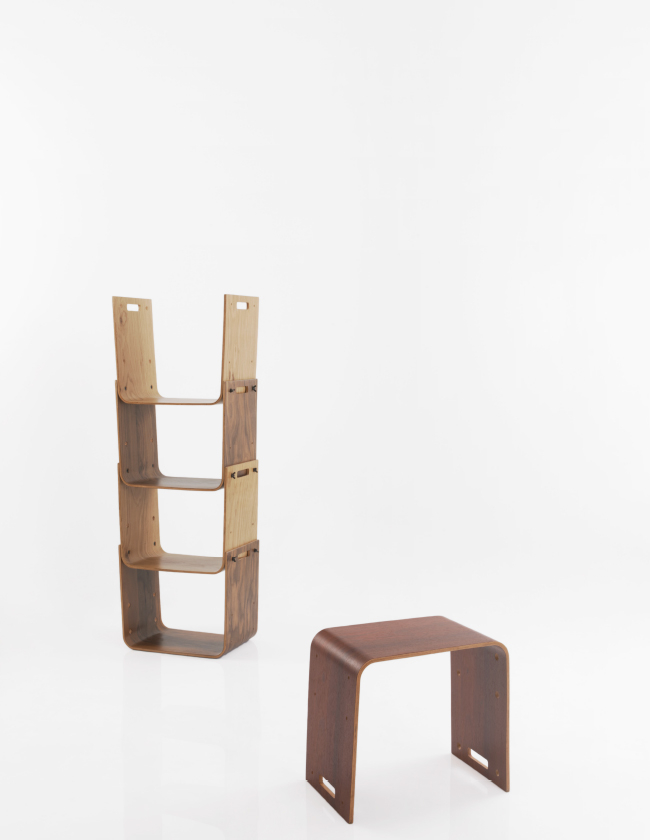 It can also be used singularly as a stool. Layers of different colors are mixed and matched as a set of versatile storage components.