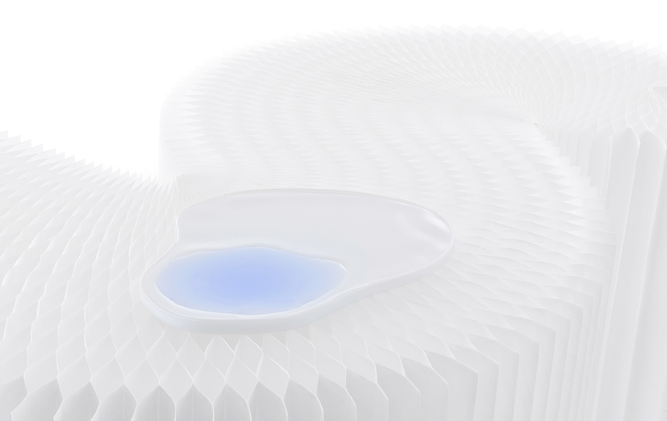 Dew Drop redefines the fascinating structure of the dew as glass lighting with double-layered deep reflection surfaces.