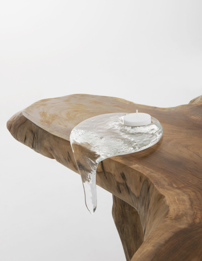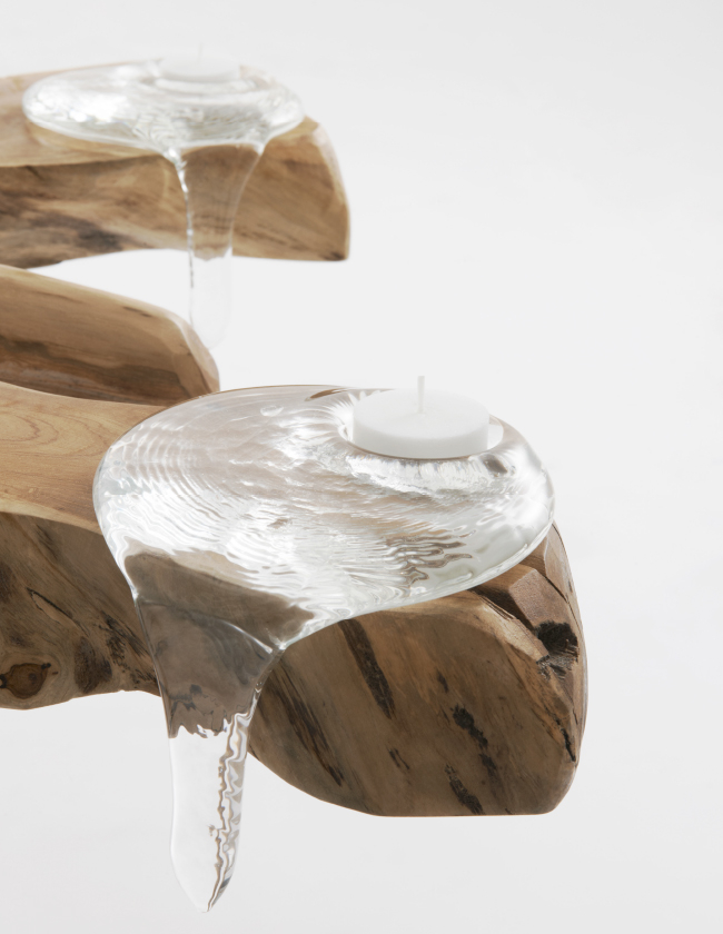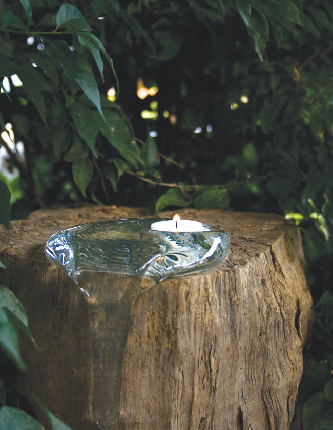 Bir ağacın dalına tutunmuş, eriyen bir buz damlasını andıran icedrop, hareketin dondurulmuş hâlidir sanki. Camın doğasına ait akışkanlık, ustanın kabiliyeti ile birleşerek her biri eşsiz bu özgün mumlukları sunuyor.
