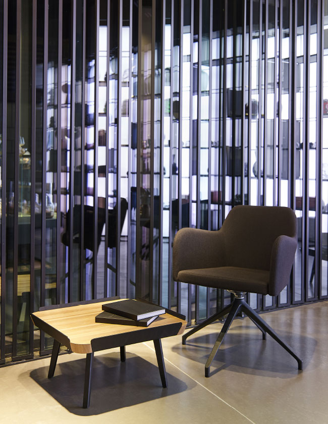 iç mekan mobilyası görevi gören merkezi sergileme birimleri, ferah bir mekan kurgusunun yapı taşlarından biri olarak
