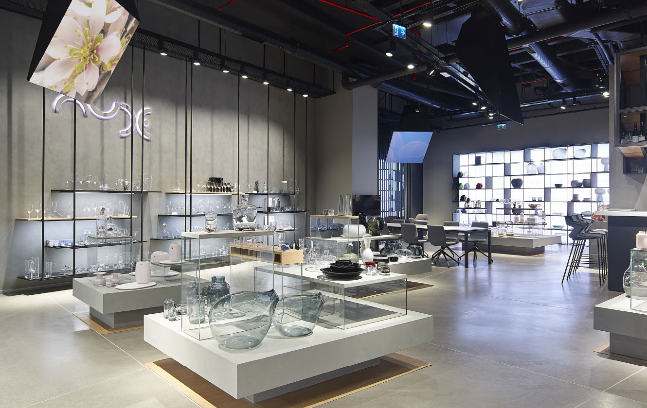 Doğal malzemeler ve yalın formların bir araya gelerek ürün sergileme foksiyonunu üstlendiğini görüyoruz. Beton efektli yüzeylerin temel oluşturduğu sergileme yapısı markanın “Simple is beautiful” mottosunu yaşanılır kılıyor. Modern bir