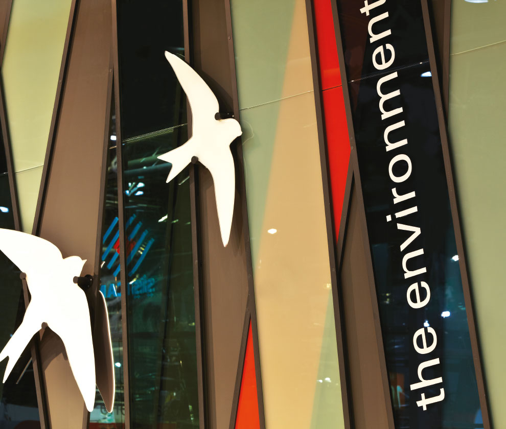 Stand genelinde yaratılan soyut orman duygusu aynı zamanda Şişecam’ın doğa dostu atılımları ve beraberinde gelişen kurumsal imajının bir yansıması olarak da değerlendirildi.