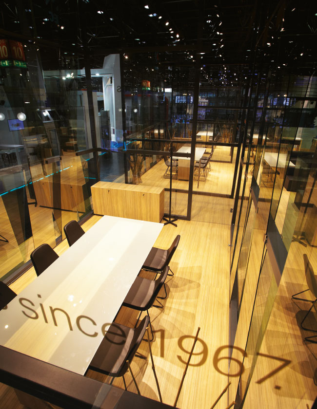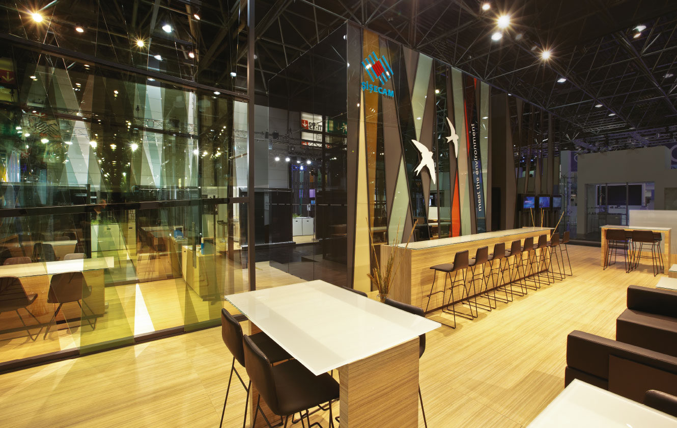 “Düşüncelerin buluşması” adlı stand ile Şişecam Trakya Cam’ın yüksek üretim gücü ve ürün çeşitliliğinin, çevreci ve enerji verimliliği gibi marka değerleriyle buluşturulması amaçlanmıştır. Doğanın malzeme ile olan yakın ilişkisi stand tasarımına ilham kaynağı olmuştur.