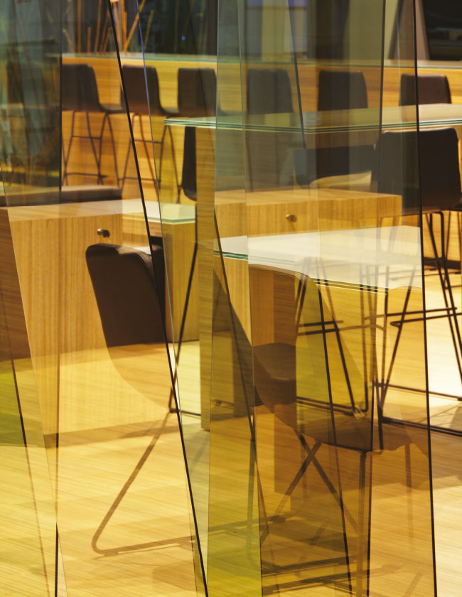 Görüşme alanlarının her birini çevreleyen dinamizm çağrışımlı yaratıcı cam panellerden oluşan duvarlar bu alanları odak noktası haline getiriyor. Dışarıdan güçlü anıtsal birer yapı olarak algılanan bu alanlar, dış yüzeylerinin sergileme ve üretim gücünü gösteren bir enstelasyon alanına dönüşmesi ile iş yapma biçiminin dışa yansıtılma aracı olarak tasarlandı.